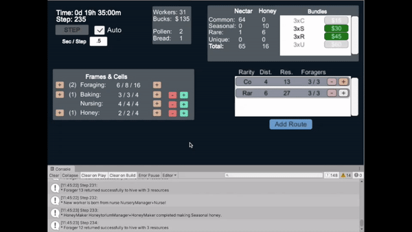 Working closely with Honeybee Labs to ensure gameplay reflected the actual science of how bees and bee keeping worked, I started by creating a paper prototype to validate the game's core loop, ensuring that the player's choices felt meaningful and created engagement. I spent the following months creating game design documentation, iterating on the project with Honeybee Labs and Frag Games to get the gameplay and the aesthetics just right. Toward the end of the project I created several simulations of the game's economy so that we could experiment with the balance of the game's variables.